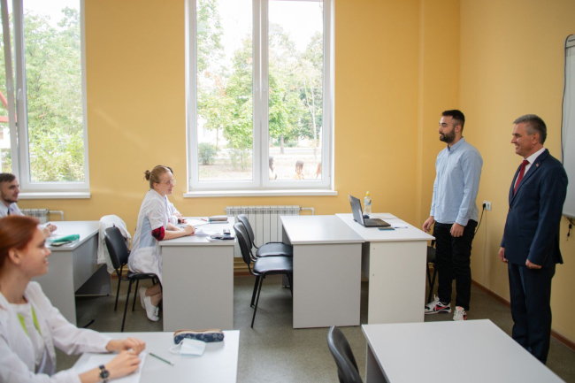 Вадим Красносельский осмотрел также учебно-научно-клинический комплекс стоматологии ПГУ. Это подразделение переоснащено: оборудованы учебно-практические кабинеты терапевтической, ортопедической, хирургической и детской стоматологии. Здесь получают и совершенствуют знания и навыки студенты и ординаторы.