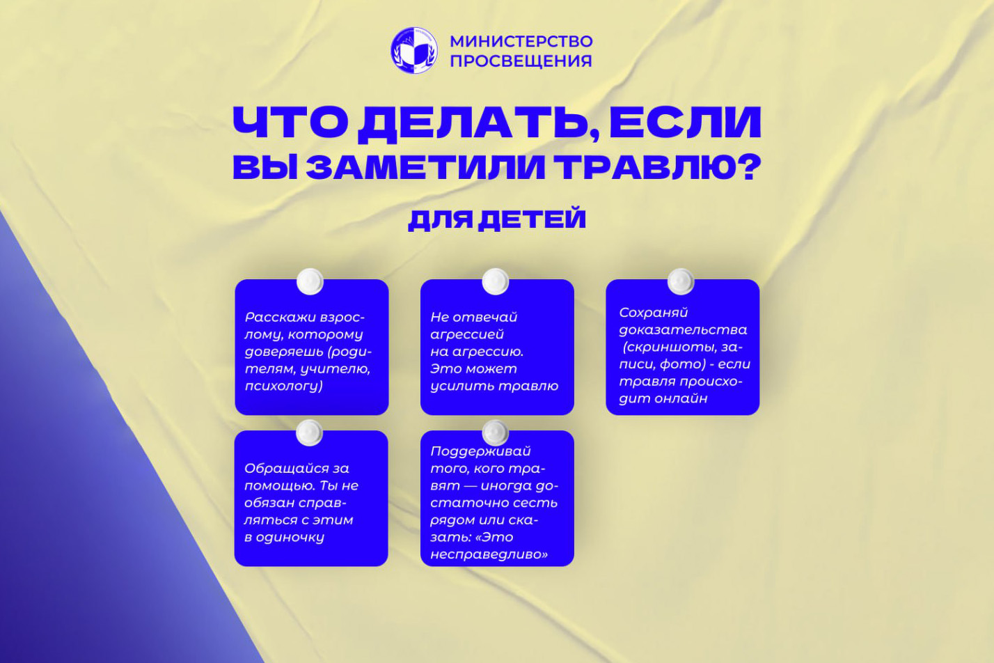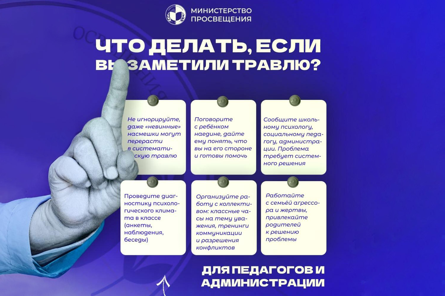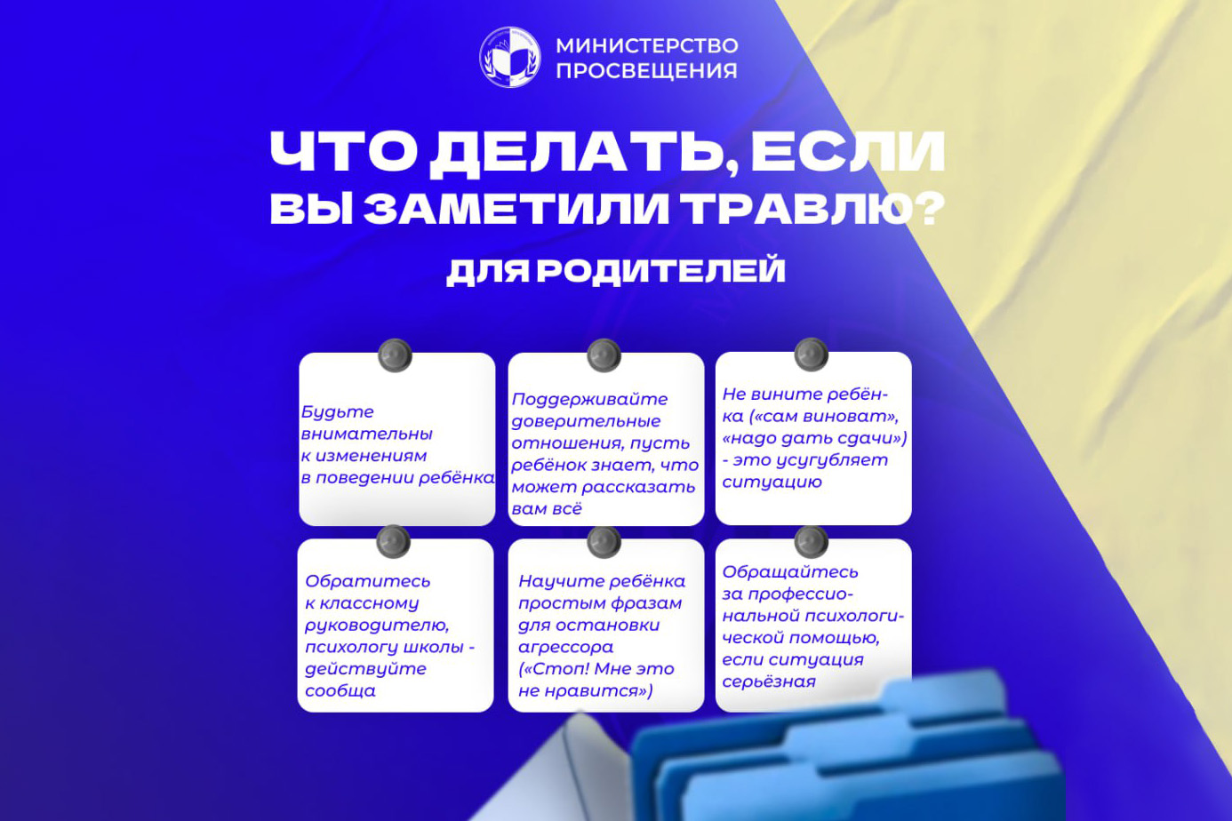 Министерство представило рекомендации для родителей, как поддержать ребёнка и куда обратиться, а также инструкции для администрации и педагогов по организации системной работы по предотвращению и пресечению буллинга в школе.
