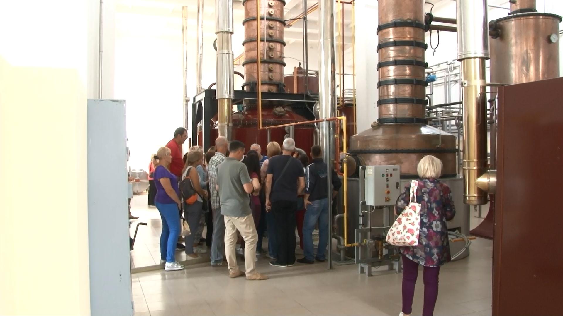 С секретами самого изготовления виноматериала гостей ознакомили непосредственно в производственных цехах. В них установлено новое итальянское и французское оборудование: современные линии, на которых перерабатываются до 30 т виноматериала в час, огромные емкости для дистилляции спиртов. Их выдерживают в специальных бочках не менее трех лет.