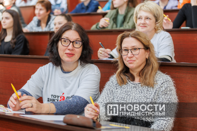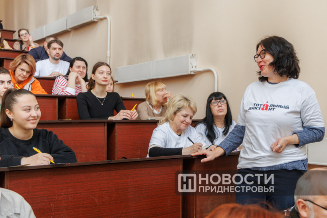 Приднестровцы писали диктант одновременно с так называемой западной стороной – жителями населённых пунктов, что западнее Урала. Акция традиционно проходила при поддержке партии «Обновление», Россотрудничества и Союза русских общин. На память всем участникам диктанта остались ручки с логотипом, а самым активным Россотрудничество подарило книги.