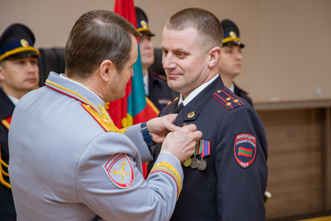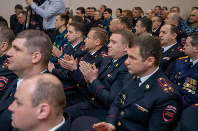 «Исторически сложилось, что после перехода подразделений милиции под юрисдикцию ПМР сотрудники органов внутренних дел не только в числе первых встали на защиту приднестровцев от агрессии Республики Молдова, но и успешно противостояли росту преступности в лихие 90-е», – отмечалось в приветственном адресе президента, который зачитали на торжественном собрании.
