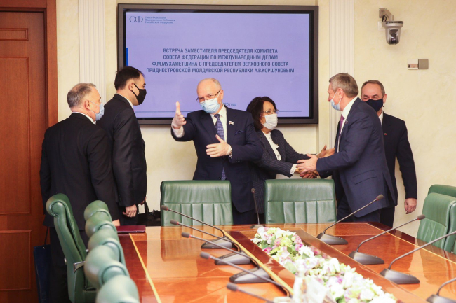Сегодня приднестровская делегация провела рабочие встречи на площадке Совета Федерации – верхней палаты Федерального Собрания Российской Федерации – с Фаритом Мухаметшиным, Сергеем Муратовым и главой Комитета по международным делам Совфеда Константином Косачевым.