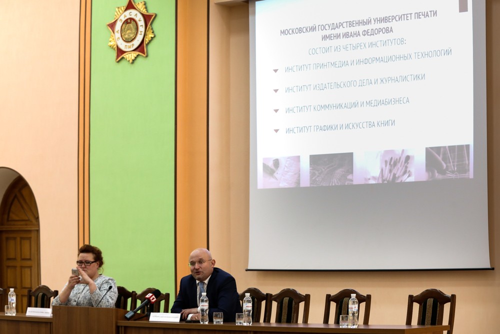 «Наш вуз – уникальный и единственный на постсоветском пространстве центр образования в сфере медиаиндустрии. Студентов мы готовим по более 30-ти направлениям. Мы готовы помочь в подготовке и переподготовке кадров по тем направлениям, которые вас интересуют. В рамках сотрудничества с ПГУ, в частности, речь идет о подготовке и переподготовке профессиональных преподавательских кадров, возможно, о разработке совместных проектов в области методологии обеспечения образовательных процессов и научных исследований, сотрудничестве в издательском деле, а также о развитии издательской деятельности ПГУ. Мы готовы оказать всемерную поддержку», - подчеркнул Константин Антипов.