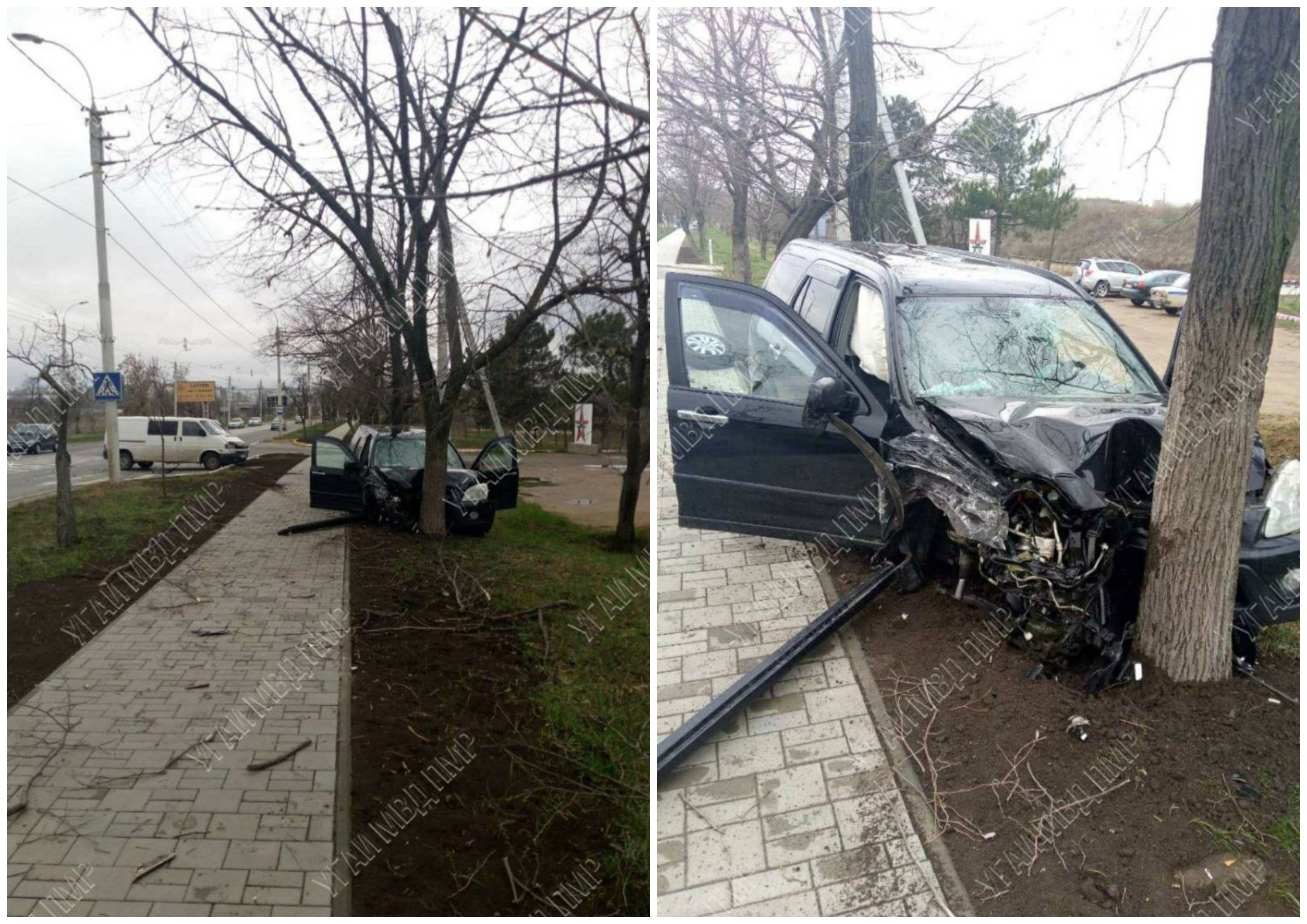 Бендеры, 3 апреля. /Новости Приднестровья/. Авария произошла 3 апреля около 13:00 на ул. Панина в Бендерах. Volkswagen Transporter поворачивал налево. В этот момент Honda пошла на обгон. За рулём кроссовера находился 57-летний мужчина. Микроавтобусом управляла 48-летняя женщина. В результате столкновения чёрная иномарка вылетела за пределы дороги и врезалась в дерево. Микроавтобус наехал на бордюр. У машин серьёзные механические повреждения, сообщает пресс-служба МВД ПМР.
