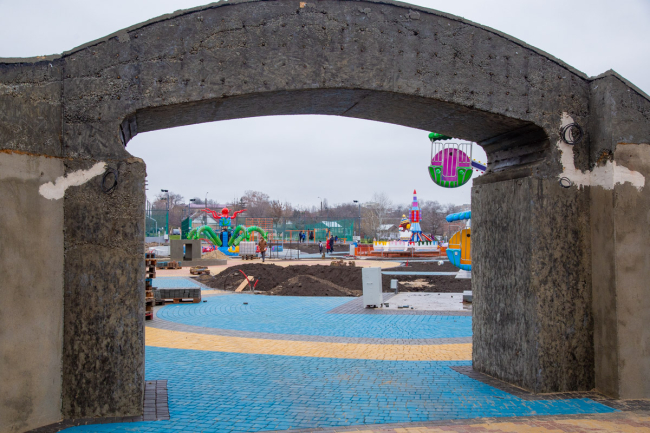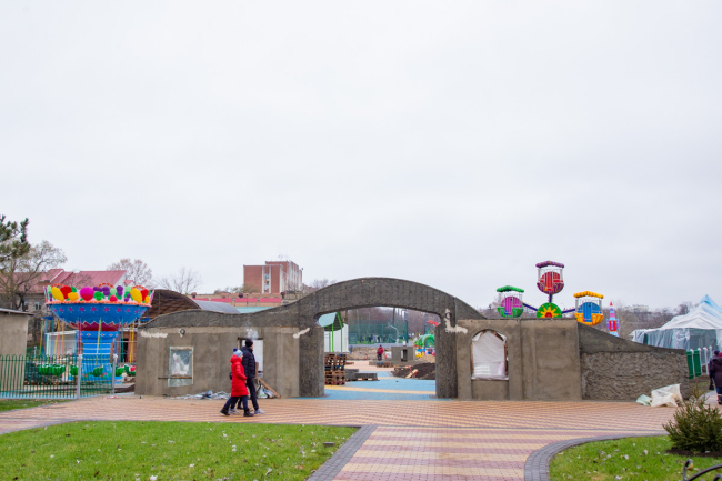 Параллельно продолжаются работы по устройству «Чудо-града». Специалисты уже приступили к установке стоек для освещения. Число скамеек, расположенных по обеим сторонам парка, в скором времени увеличится.