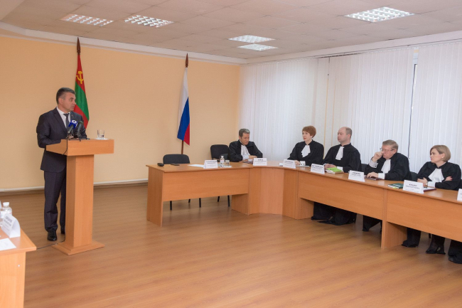 Тирасполь, 22 февраля. /Новости Приднестровья/. Сегодня на Пленуме Арбитражного суда ПМР подводились итоги работы в 2018 году. В числе приглашённых были Президент Вадим Красносельский, вице-премьер Станислав Касап, спикер парламента Александр Коршунов, Прокурор республики Анатолий Гурецкий, руководители ещё ряда органов госвласти.