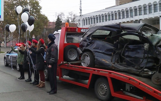 Антирекламой нарушению правил дорожного движения стала демонстрация повреждённых в результате аварий автомобилей.
