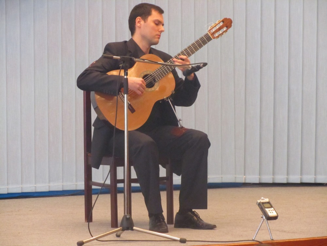 Музыкант исполнил произведения итальянского композитора и клавесиниста Доменико Скарлатти, российского гитариста (русская семиструнная и классическая гитары), композитора и аранжировщика Сергея Руднева, парагвайского гитариста и композитора Августина Барриоса. Прозвучало самое известное аргентинское танго «Кукурузный початок», написанное Анхель Грегорио Вильольдо, а также «Фуоко» французского джазового и классического гитариста-виртуоза Роланда Дьенса, «Зима» аргентинского музыканта и композитора Астора Пьяццолла, «Балканская сюита» Мирослава Тадича.
