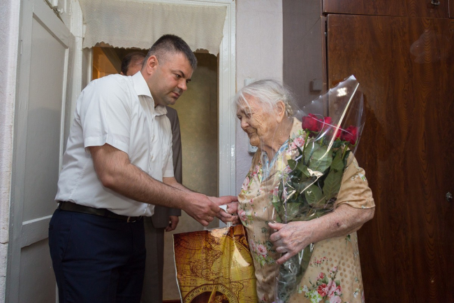 Начальник Государственной службы СМИ Лидия Колодка, директор ГУ «ПГТРК» Игорь Никитенко и руководитель «Приднестровской газеты» Василий Бурлак вручили цветы и подарки людям, которые своим мужеством и отвагой приближали победу над фашизмом.