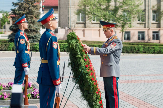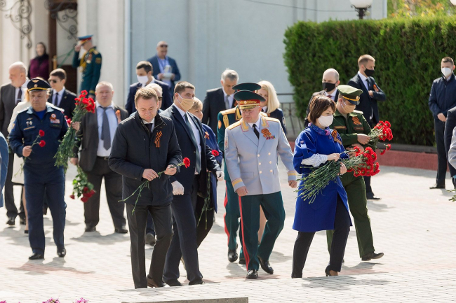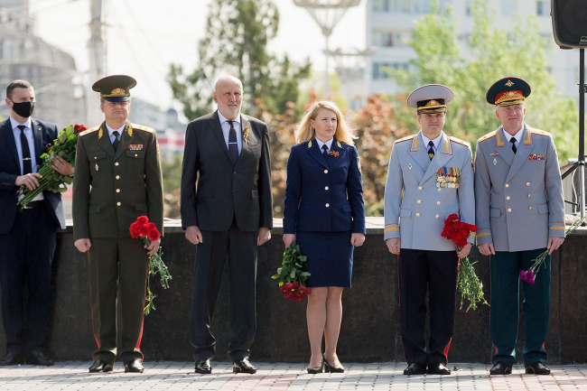 В столице низким поклоном выразил благодарность и почтение погибшим и умершим участникам Великой Отечественной войны Президент Приднестровской Молдавской Республики Вадим Красносельский. Памятный венок у Вечного огня – символ благодарности, как и россыпь цветов, возложенных на каменные плиты с высеченными именами героев и к подножиям памятников, установленных на столичном Мемориале Славы.