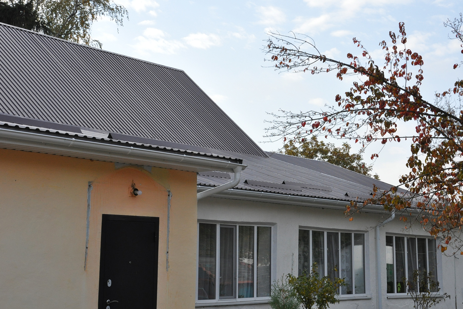 В «Ласточке» установили новую шатровую кровлю из профнастила, выполнили монтаж водосточной системы. Выполнены также работы по строительству теплой веранды здания, в котором располагаются ясельные группы.