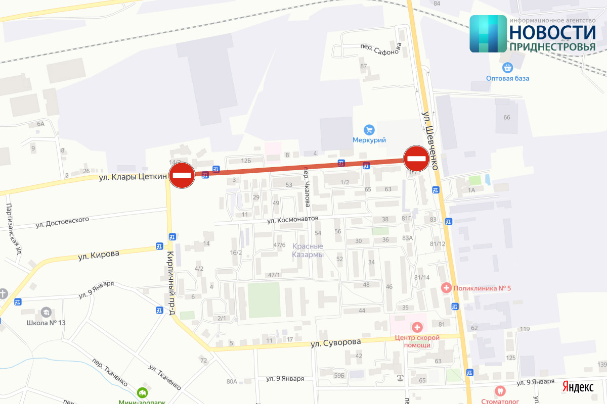 Тирасполь, 15 сентября. /Новости Приднестровья/. С 16 по 30 сентября в Тирасполе перекроют движение автотранспорта по ул. Клары Цеткин от ул. Шевченко до проезда Кирпичного.