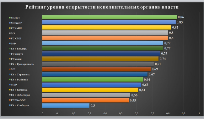 В 2019 году была принята Концепция повышения открытости исполнительных органов власти, которая предусматривает ежегодное формирование рейтинга исполнительных органов власти ПМР, подведомственных Правительству.
