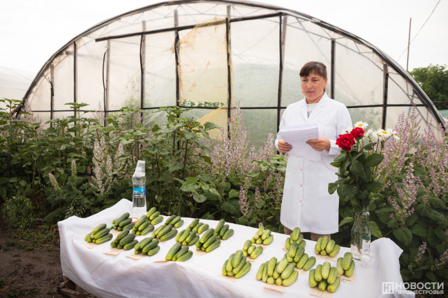 Сегодня в центре внимания были огурцы. Это гибриды, которые пригодны как для плёночных теплиц, так и для открытого грунта. Комиссии показали лучшие из них по урожайности и по вкусовым качествам. Всего получилось несколько десятков гибридов. Были как уже районированные (которые по результатам государственного сортоиспытания рекомендованы для возделывания в определенном агроклиматическом регионе), так и новые.