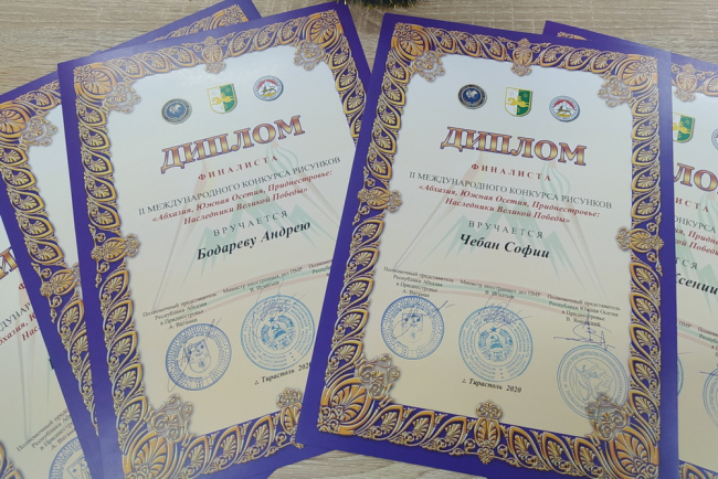Дубоссары, 28 декабря. /Новости Приднестровья/. Сегодня в Дубоссарской картинной галерее прошло торжественное вручение дипломов финалистам II Международного конкурса «Абхазия, Южная Осетия, Приднестровье: наследники Великой Победы». Мероприятие было приурочено к 75-летию Победы советского народа в Великой Отечественной войне и 30-летию провозглашения независимости Приднестровья, Абхазии и Южной Осетии.