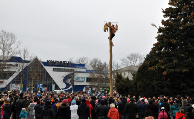 Десятки желающих смогли попробовать себя в традиционных спортивных состязаниях: лазанье на столб и поднимание гири. Кульминацией праздничного дня стало сжигание чучела зимы.