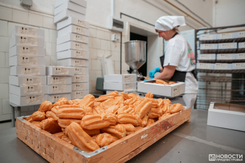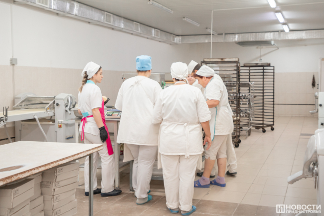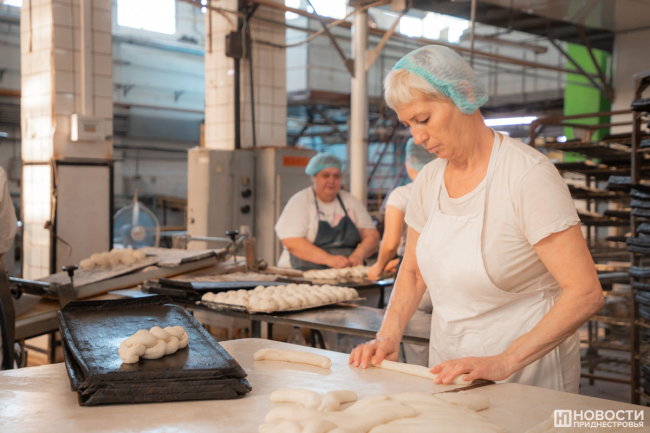«В день мы делаем примерно по 50 видов кондитерской продукции, а вообще у нас очень много наименований. Самые ходовые у нас это булочки "Изюминка", "Обожайка", печенье разное, эклеры, булка с маком, кекс к чаю. Мы делаем очень красивые караваи – свадебные, праздничные, пироги. Много видов хлеба – солодовый, фирменный, сейчас недавно выпустили багет французский. Всего на предприятии у нас около тысячи наименований продукции, в сутки выпекаем около тонны готовых изделий», – рассказала мастер кондитерского цеха Екатерина Кипер.