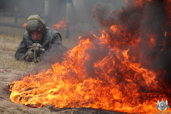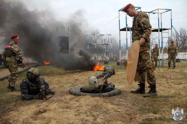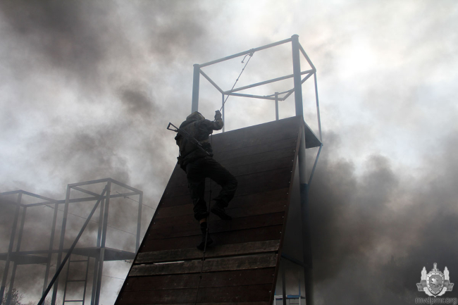 Марш-бросок завершается по месту дислокации подразделения. Уже там бойцов ждёт следующее испытание – огненно-штурмовая полоса препятствий. Горящие покрышки, чёрный едкий дым создают не только антураж, но и проблемы с дыханием. На протяжении всей дистанции кандидатов сопровождают инструкторы – счастливые обладатели тех самых заветных краповых беретов. Они наблюдают за выполнением спецназовцами установленных нормативов.