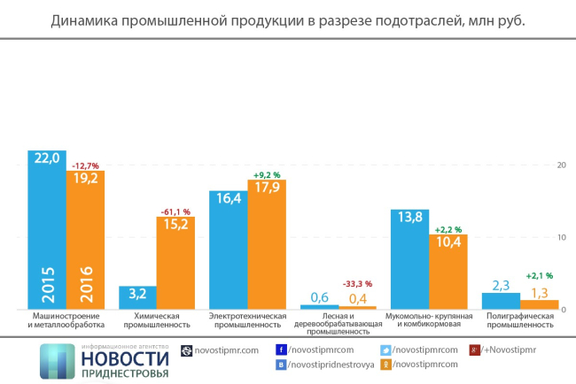 Продолжающееся падение мировых цен на сырье и материалы, в совокупности с воздействием ограничительных барьеров в отношении предприятий республики со стороны соседей оказали дестабилизирующее воздействие на результаты деятельности предприятий, отмечается в обзоре Минэкономразвития. К тому же сказался и недостаток собственных оборотных средств и сложности в привлечении заемных ресурсов. Необходимость двойного таможенного оформления (Молдовы и Приднестровья) экспорта и импорта способствовало снижению конкурентоспособности отечественной продукции.