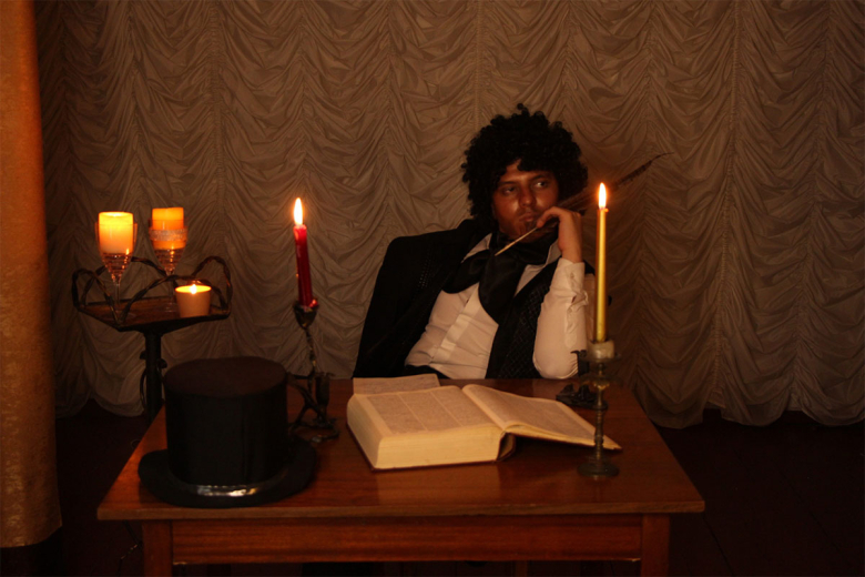 Один пришёл сам. Роман Агафонов ко дню рождения Пушкина подготовился основательно, говорит, в таком образе был уже не единожды, а потому он для него уже привычен.