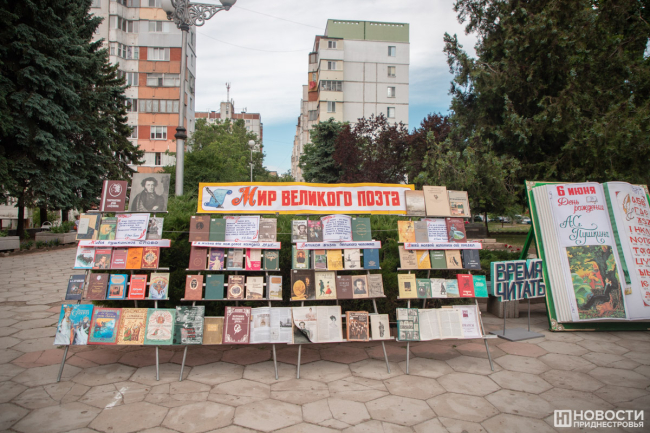Тирасполь, 6 июня. /Новости Приднестровья/. В Тирасполе сегодня гуляли Пушкины. Как всегда в этот день, всё началось у центральной столичной библиотеки (рядом стоит памятник великому поэту, а сама она носит его имя). Здесь подготовили традиционную книжную выставку – произведения Пушкина и книги о нём, посвящённые его жизни и творчеству. В библиотеке напомнили, что лето – прекрасная пора уделить время книгам. Тем более что здесь есть много интересного и для детей, и для взрослых.