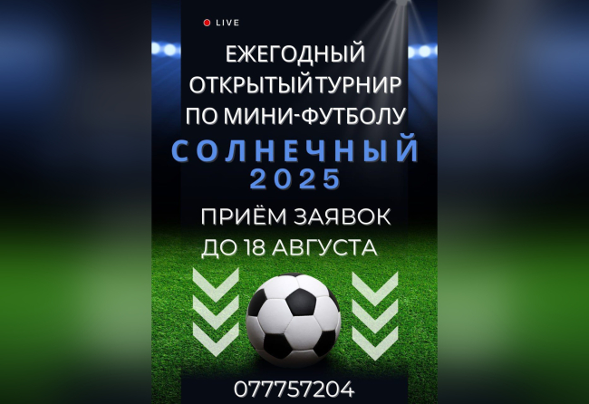 Бендеры, 12 августа. /Новости Приднестровья/. В Бендерах стартовал приём заявок на участие в ежегодном открытом турнире по мини-футболу «Солнечный-2025».