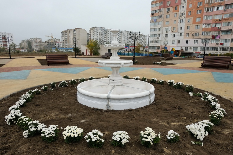 Сейчас зону отдыха из растительности украшают лишь недавно высаженные хризантемы. Планируется, что там, как и на набережной, вскоре появится газонное покрытие.