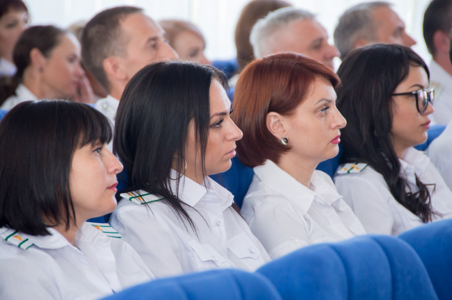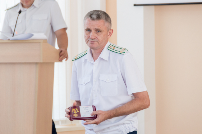 В ходе собрания был зачитан указ Президента о присвоении отличившимся работникам ведомства очередных классных чинов и государственных наград.