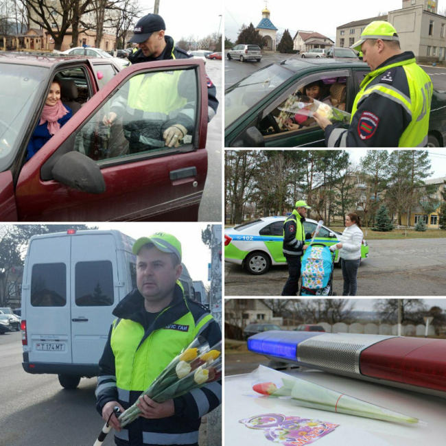 Тирасполь, 6 марта. /Новости Приднестровья/. В преддверии 8 Марта женщины принимают поздравления от сотрудников Госавтоинспекции. В рамках акции «Цветочный патруль», которая проходит во всех городах Приднестровья, вместо проверки документов сотрудники ГАИ дарят женщинам-водителям цветы и тёплые поздравления, сообщает пресс-служба МВД ПМР.