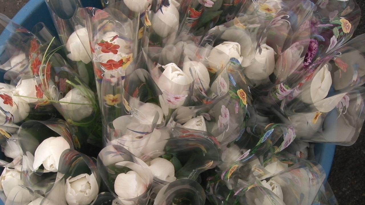 Каждая женщина, остановленная гаишниками, получила в подарок цветы