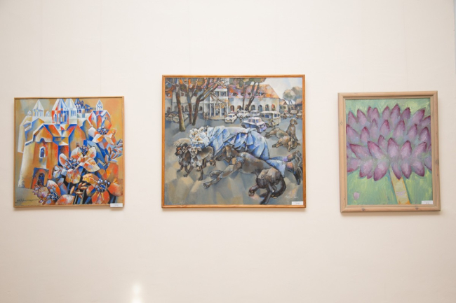 В нее вошли порядка 80 работ разных жанров и направлений изобразительного искусства