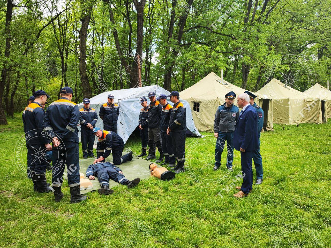 Подразделения южной зоны – из Тирасполя, Бендер и Слободзеи – собрались в лесу на берегу Днестра. 50 сотрудников развернули полевой лагерь и автономный городок. В нём созданы все условия для жизни в экстремальных условиях во время ликвидации чрезвычайных происшествий.