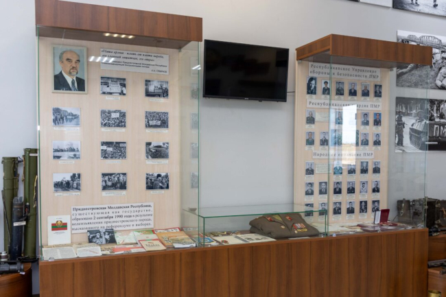 Экспозиции музея охватывают разные исторические эпохи - от времён генералиссимуса Суворова до наших дней. Отдельный раздел посвящён становлению и развитию Республиканской гвардии - прародительницы современных Вооружённых сил Приднестровья.