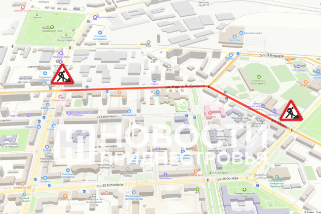Также проезд будет закрыт по улице Мира от улицы Карла Либкнехта до улицы Синева.
