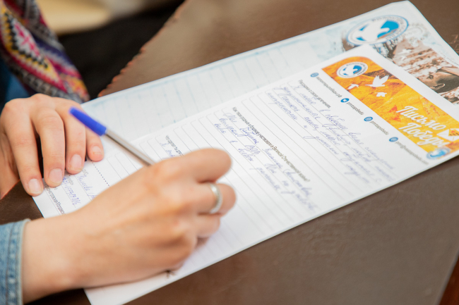 «Каждый участник получает два бланка. В одном из них необходимо рассказать о себе, своих увлечениях, о том, кем были родственники, которые участвовали в Великой Отечественной войне, и что сделал ты для сохранения памяти. Во втором бланке необходимо написать поздравление ветерану ВОВ на выбор – с Днём рождения, Днём защитника Отечества, с Международным женским днём либо с Днём Победы», – пояснил координатор общественного движения «Волонтёры Победы. Приднестровье» Евгений Назаренко.