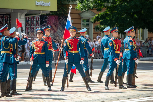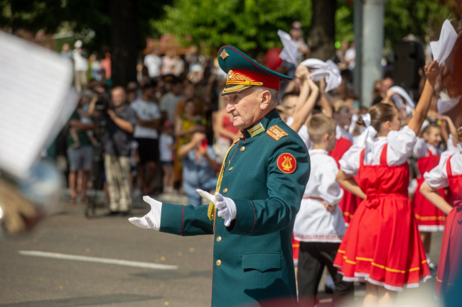 Тирасполь, 2 сентября. /Новости Приднестровья/. На главной площади приднестровской столицы состоялся праздничный плац-концерт, посвященный Дню Республики. Традиционный для таких выступлений тандем оркестра главного штаба Вооруженных сил и роты Почетного караула украсили юные артисты Студии танца «Надежда».