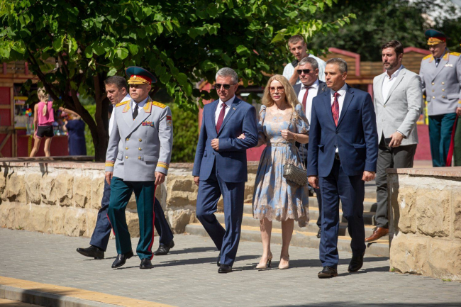 Среди тысяч зрителей – Президент Приднестровской Молдавской Республики Вадим Красносельский с супругой Светланой.