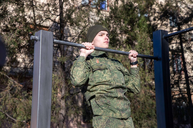 Продолжились тематические мероприятия спортивной эстафетой. Ребята соревновались в подтягиваниях на перекладине, в отжиманиях на брусьях и от пола, а также в перетягивании каната. Был в программе и новый вид соревнований: мас-рестлинг – национальный вид спорта Якутии, образованный от традиционной игры в перетягивание палки. В отжимании от пола юные защитники показали лучший результат среди всех команд.