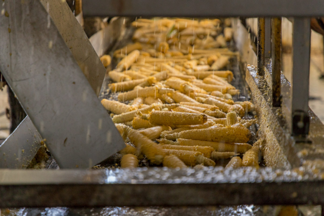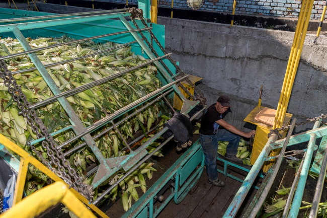 Сейчас в сутки здесь морозят около 70 тонн продукции. Работа идёт непрерывно – початки моют, перебирают и морозят в три смены.
