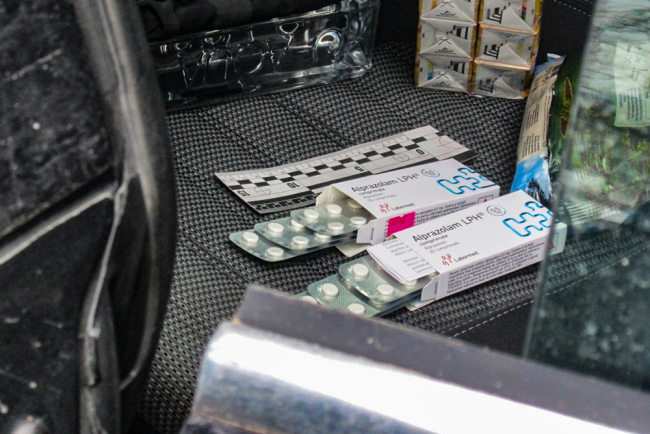 Пресс-служба Государственного таможенного комитета сообщает, что во время проведения таможенного контроля и устного опроса о наличии запрещенных медикаментов заявлено не было. При осмотре транспортного средства, инспекторы обнаружили две упаковки препарата «Алпразолам».