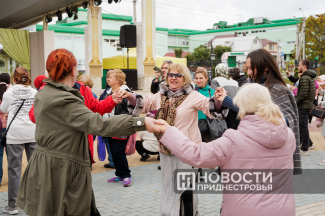 Артисты ансамбля «Ватра» вместе с тираспольчанами и гостями праздника исполнили традиционную молдавскую хору.