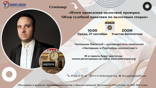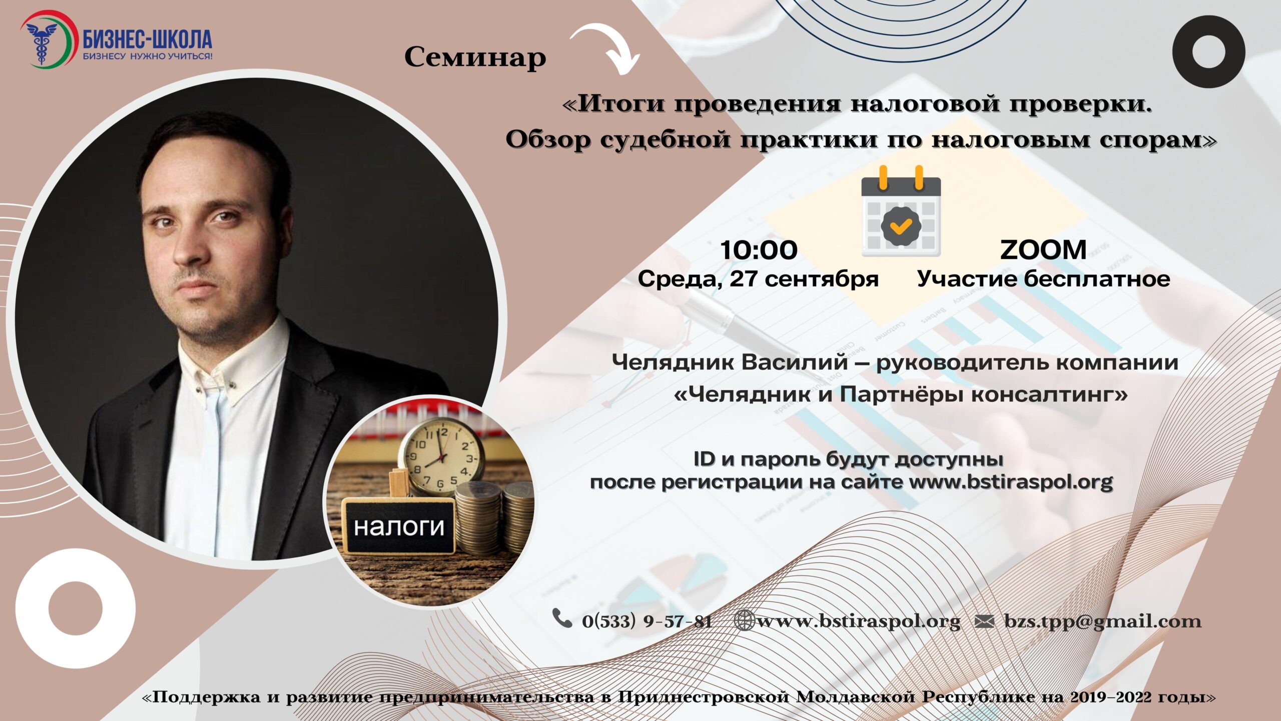 Тирасполь, 14 сентября. /Новости Приднестровья/. Торгово-промышленная палата Приднестровья организует семинар «Итоги проведения налоговой проверки. Обзор судебной практики по налоговым спорам».