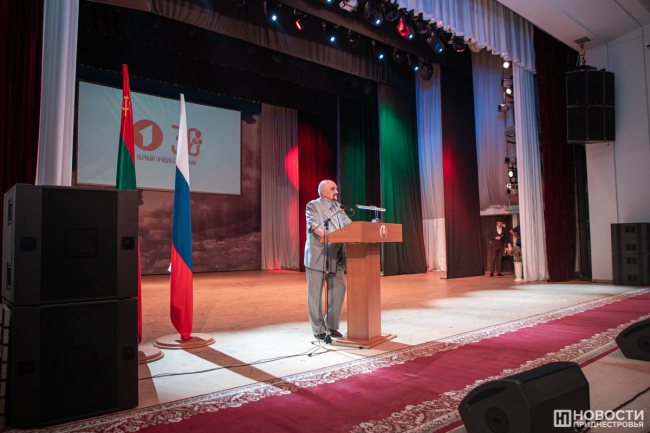 Первый Президент Приднестровья Игорь Смирнов также присоединился к поздравлениям. Отметил, что в зале находятся ветераны отрасли, те, кто 30 лет назад стоял у истоков создания приднестровского телевидения. Особое внимание уделил неоценимому вкладу Бориса Акулова, который на тот момент возглавлял Государственный комитет по информации и печати при Верховном Совете, а также первому редактору телевидения Людмиле Шульге.