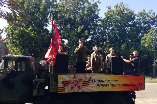 Бендеры, 24 августа. /Новости Приднестровья/. Накануне в Бендерах отметили 80-летие освобождения города от фашистских захватчиков. А сегодня по бендерским улицам курсировали две творческие агитбригады. Артисты Дворца детско-юношеского творчества, вокальные коллективы «Калинонька», «Добрыня» и солистка группы «Рондо» исполняли самые известные военные песни.