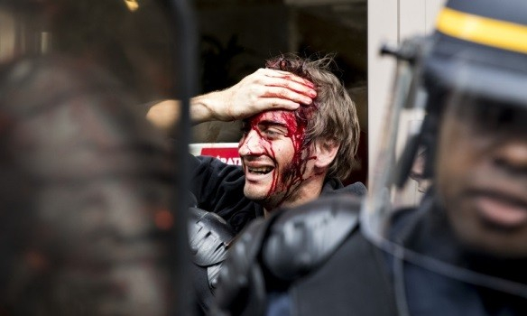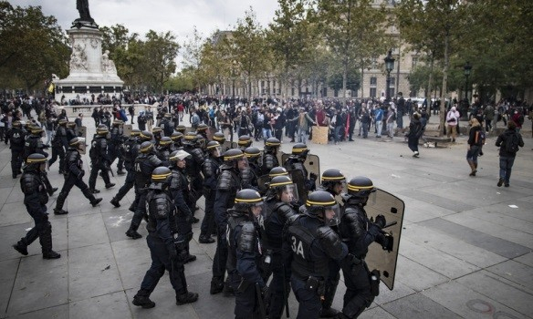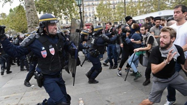 Большинство участников мирно прошли по улицам Парижа, скандируя лозунги, однако небольшие группы протестующих стали бросать «коктейли Молотова» и другие предметы в полицейских.