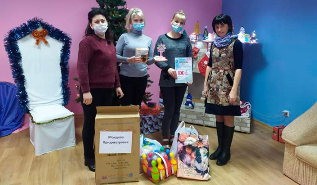 Организациям вручают также специализированные детские ходунки и сладкие подарки от Правительства Москвы, Представительства Россотрудничества в Молдове и Союза русских общин Приднестровья.