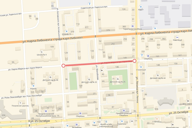 Тирасполь, 27 июня. /Новости Приднестровья/. В Тирасполе по ул. К. Маркса – на участке от ул. Котовского до ул. Ленина – перекрыто движение автотранспорта.