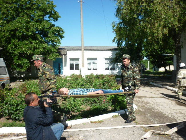 По замыслу учений на пульт диспетчера СВПЧ-6 поступила информация о возникновении пожара в раздевалке школьного спортзала. Основные усилия были направлены на организацию и проведение спасательных работ и тушение пожара.