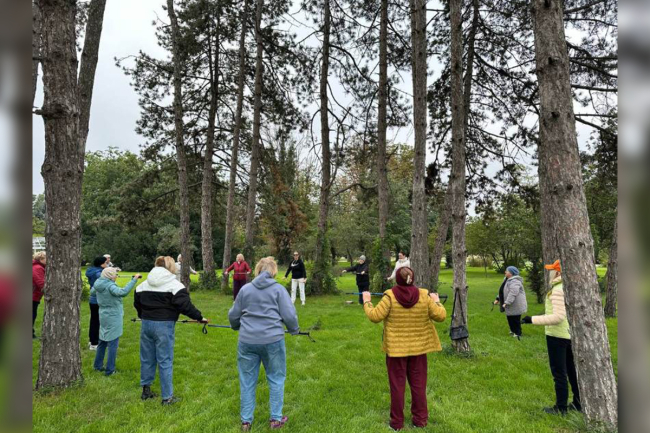 Уроки скандинавской ходьбы провели в столичном дендрарии