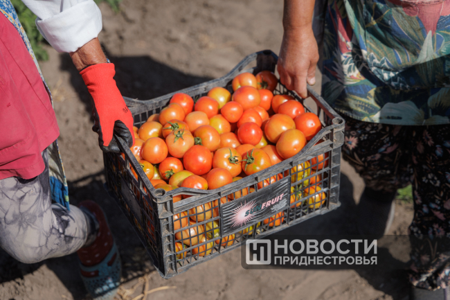 А прямо сегодня начали собирать ранние помидоры сорта «Примула». Он выведен Приднестровским научно-исследовательским институтом сельского хозяйства.